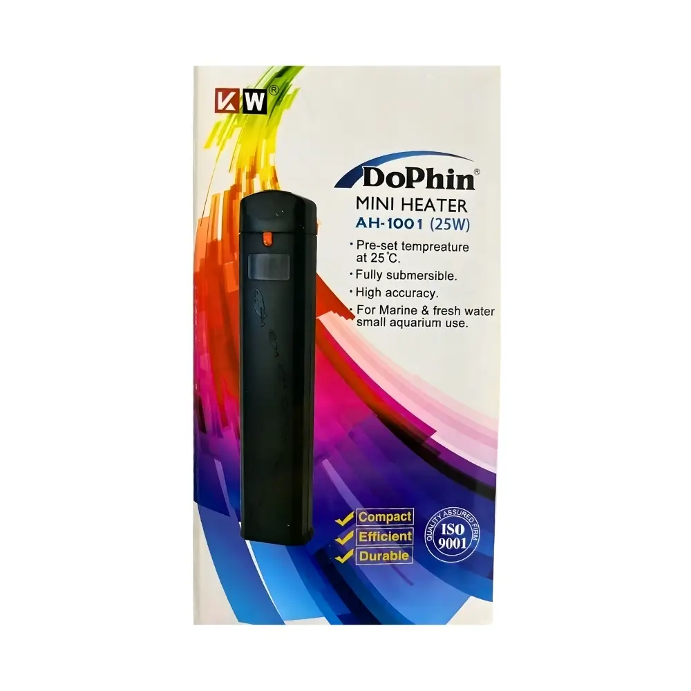 Dophin Mini Aquarium Heater Series (includes models AH-1001 and AH-1002) is the definitive solution for small and nano tank temperature stability. These Preset Aquarium Heater units are designed for reliability, ensuring safe, consistent thermal control by automatically maintaining a set temperature of 25 C.