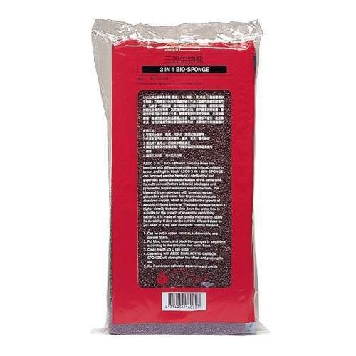 AZOO 3 IN 1 BIO-SPONGE contains three bio-sponges with different density-low in blue, middle in brown and high in black. This chemical filter media can process aerobic bacteria’s nitrification and anaerobic bacteria’s denitrification at the same time.