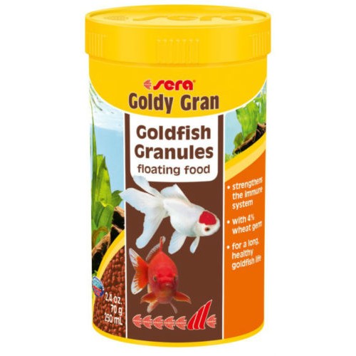 SERA Goldy Gran is the staple food consisting of carefully manufactured granules for bigger goldfish and other fastidious coldwater fish.
