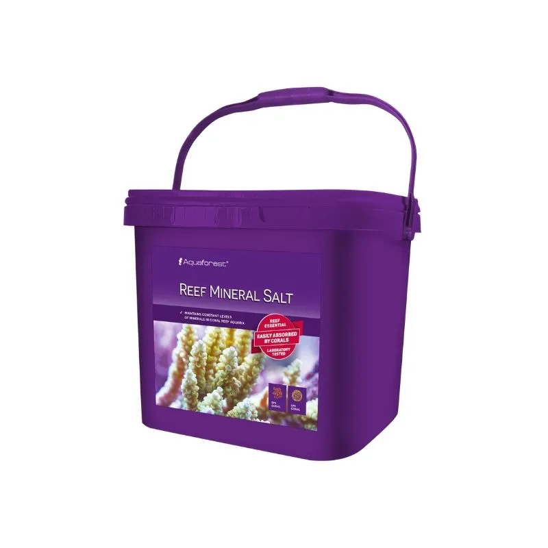 Aquaforest Reef Mineral Salt is a Sodium Chloride (NaCl) free sea salt. It contains all the other basic components found in natural seawater, such as Magnesium, Calcium, Potassium, Bromine, Fluorine, Barium, Iodine, and trace elements.