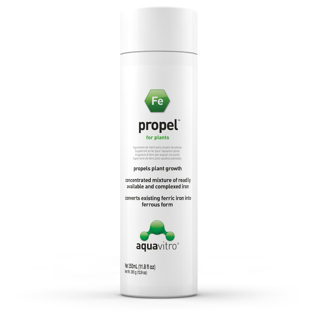 If iron is provided in the ferric form (Fe3+) then it must be reduced by the plant to the ferrous form (Fe2+) before it can be utilized. This process of conversion (known as reduction) requires the plant to expend physiological energy. Aquavito Propel provides iron already in the ferrous form thus enhancing iron utilization. In addition, propel contains a reducing agent that helps convert any iron present (such as iron from substrate) into the ferrous form.