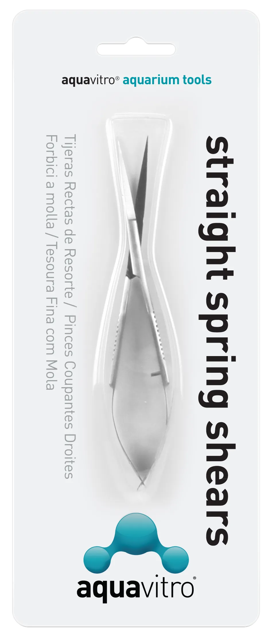 Aquavitro premium surgical stainless steel straight spring shears are ideal for the regular maintenance of aquatic plants, particularly when trimming smaller leaves and stems such as grasses closer to the aquarium bed.
