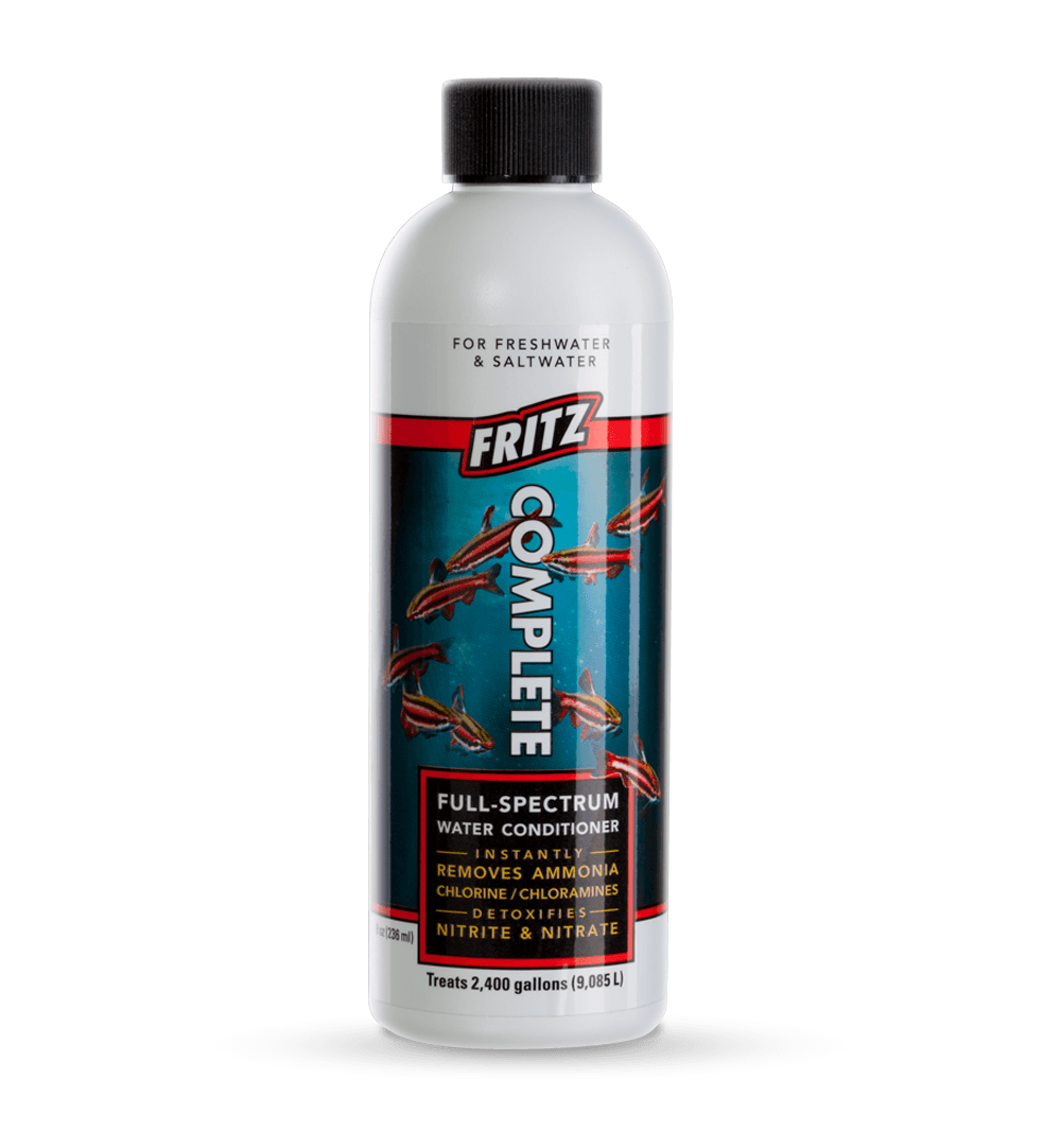 Fritz Complete is a concentrated, one-step, full-spectrum water conditioner that detoxifies chlorine, chloramine, heavy metals, ammonia, nitrite and nitrate. Safe to use in fresh and saltwater, including reef and planted aquariums. Use when setting up new aquariums, performing water changes or to quickly alleviate high ammonia, nitrite and nitrate.
